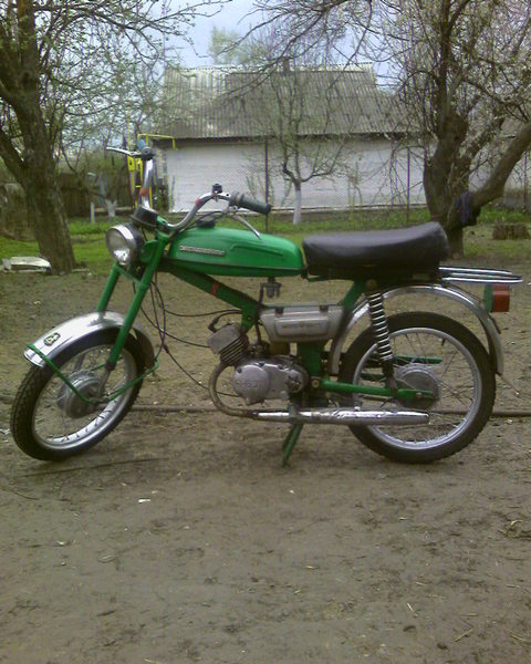 Технические ХарактеристикиМасса, кг 53,5 Максимальная нагрузка, кг 100 База,мм 1120-1170 Длина, мм 1770 Высота, мм 1200 Ширина, мм 720 Дорожный просвет, мм 100 Максимальная конструктивная скорость, км/ч 50 Расход топлива при скорости 30 км/ч, л/100 км 2,2 Рама Трубчатая, сварная Подвеска переднего колеса Телескопическая вилка,с пружинными амортизаторами. Задняя подвеска Маятникового типа, с пружинными амортизаторами. Тормоза Барабанного типа с раздельным механическим приводом на каждое колесо. Тормозной путь обоими тормозами V=30 км/ч , 7м Размер шин 2,50-16" Тип двигателя Ш62 карбюраторный,двухтактный, с охлаждением встречным потоком воздуха. Рабочий объем, куб.см 49,8 Диаметр цилиндра , мм 38 Ход поршня , мм 44 Степень сжатия 7,5 - 8,5 Максимальная эффективная мощность двигателя, кВт (л.с.) при 4800 - 5200об\мин 1,17-1,47 (1,6-2) Максимальный крутящий момент Н*м/мин-1 29,4-32 Тип коробки передач Двухступенчатая с ручным переключением передач. Сцепление Многодисковое в масляной ванне. Моторная передача Передаточное число моторной передачи 4,75 Передаточное отношение коробки передач I передача 1,64 II передача 0,93 Передаточные числа от двигателя к заднему колесу I передача 20,57 II передача 11,66 Система зажигания Безконтактная, электронная с БКС Источник электроэнергии Генератор переменного тока 26.3701напряжением 6 В, мощностью 45 Вт. Высоковольтный трансформатор 2102.3705 или Б300Б Карбюратор К60В Воздушный очиститель С бумажным фильтрующим элементом ЭФВ-3-1А